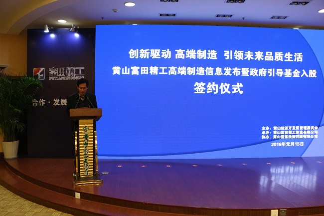1月15日,黃山富田精工高端制造信息發(fā)布暨政府引導(dǎo)基金入股簽約儀式在我市舉行,標(biāo)志著我市政府性資金引導(dǎo)促進(jìn)重點產(chǎn)業(yè)發(fā)展邁出新的改革步伐。市長孔曉宏,副市長徐德書出席簽約儀式。